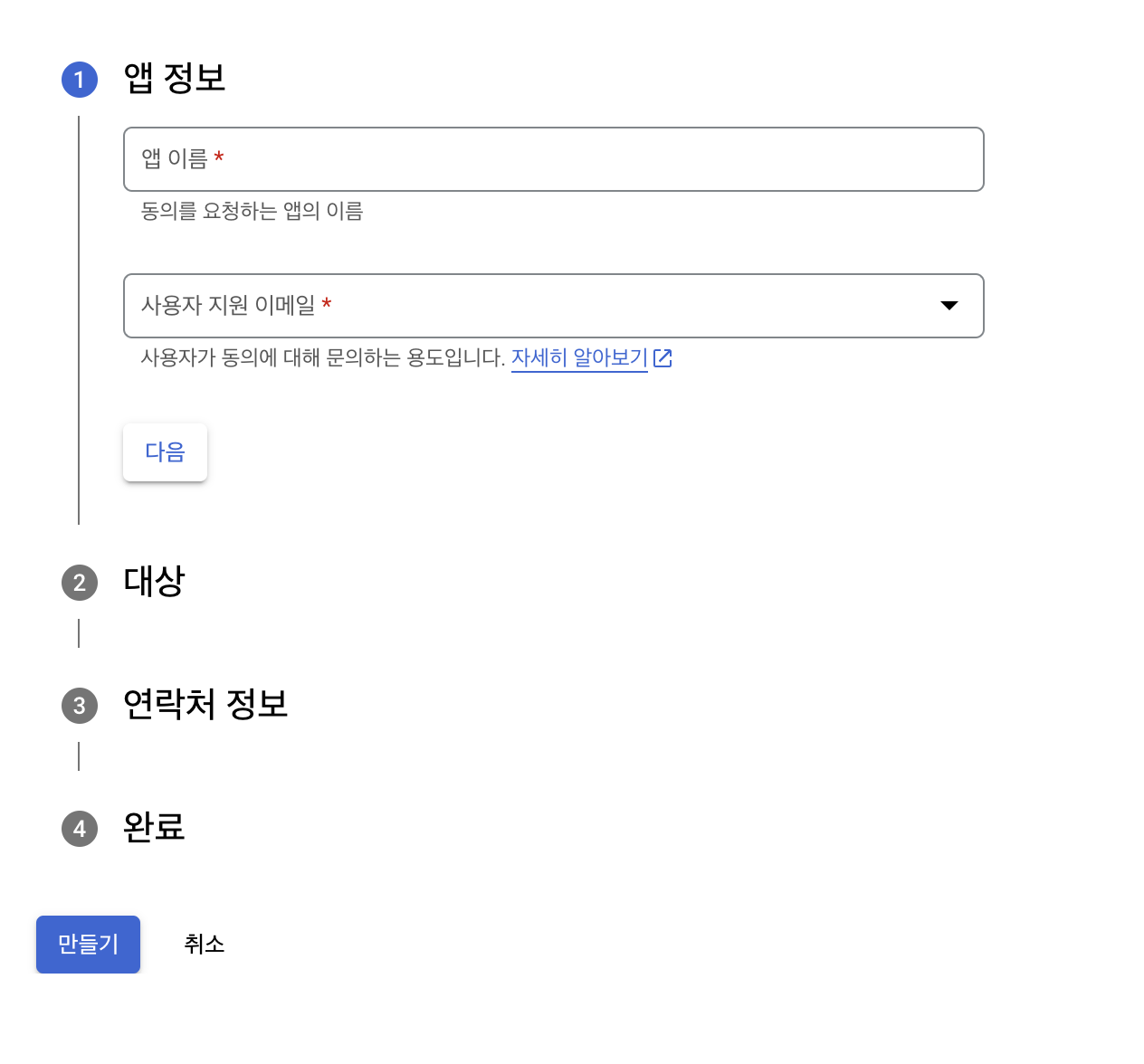 OAuth 클라이언트 ID를 생성할 때 필요한 정보를 입력한다.